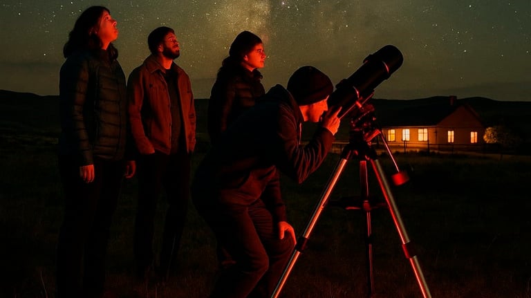 Sumérgete en una experiencia única en una auténtica estancia patagónica, donde podrás disfrutar de una noche mágica bajo un cielo limpio y estrellado, ideal para conectar con el universo; observa los astros a través de telescopios y deléitate con una cena regional al calor del fuego, en un entorno de naturaleza y silencio que invita al asombro. Consultanos por fechas disponibles y reservá tu lugar para vivir esta aventura inolvidable.